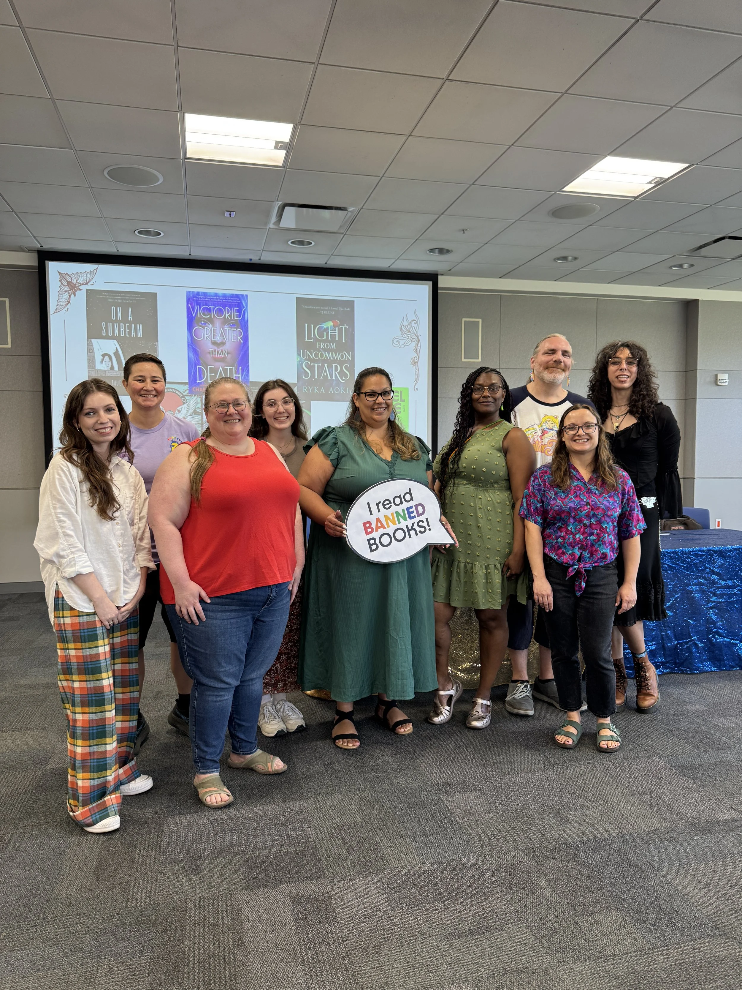 Daniel Rivers and Maite Urcaregui, with members of the SJSU English Faculty and Library Banned Books Week