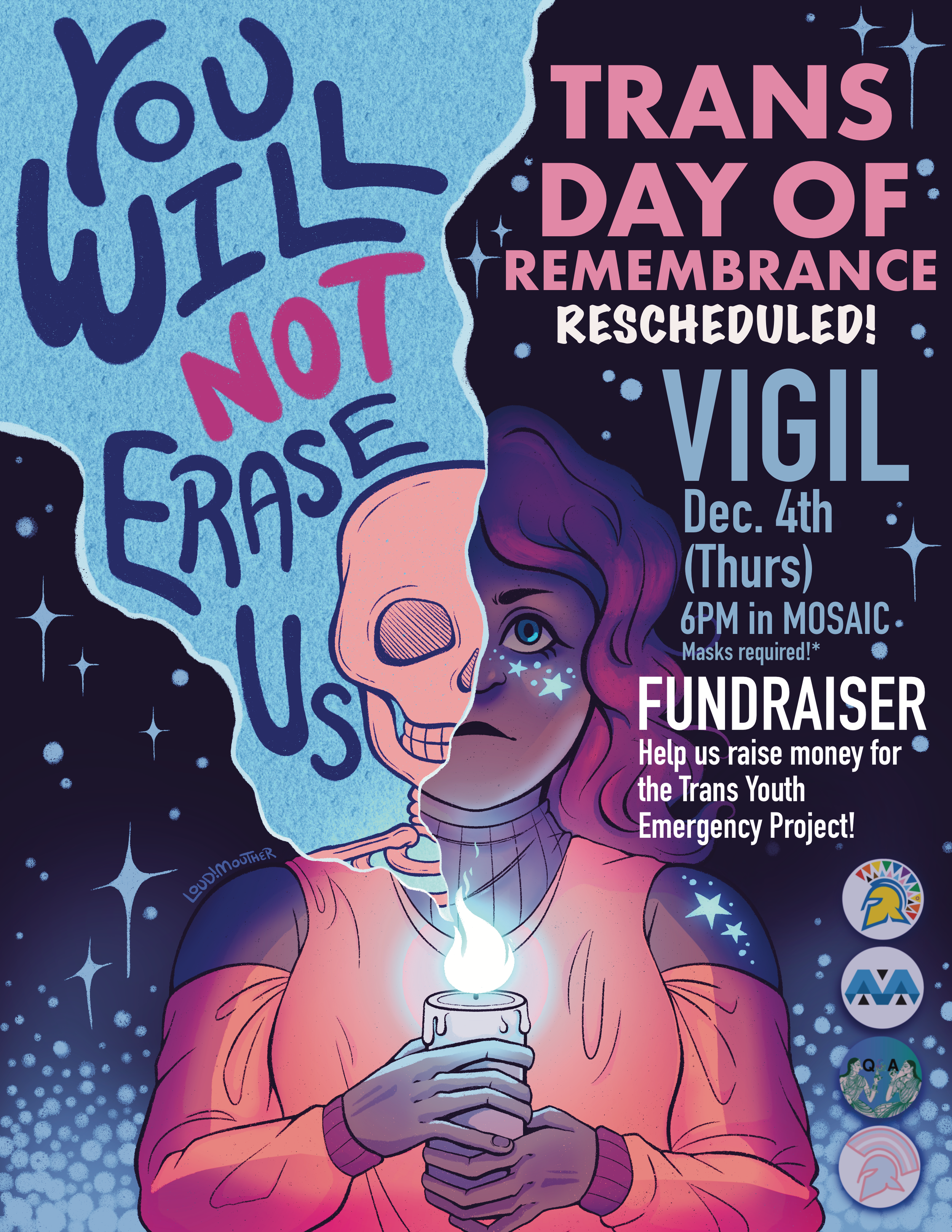 "TDOR is usually a somber event in memory of transgender people whose lives were lost in acts of anti-trans violence. These amazing students worked to mark the gravity of these losses but also affirm and celebrate their community as well by surrounding the TDOR memorial with an art gallery, artmaking social, poster campaign, memorial ritual, and fundraiser for the Southern Equality Center’s Trans Youth Emergency Program. As stated at the memorial, 'We mourn the dead and protect the living.’”